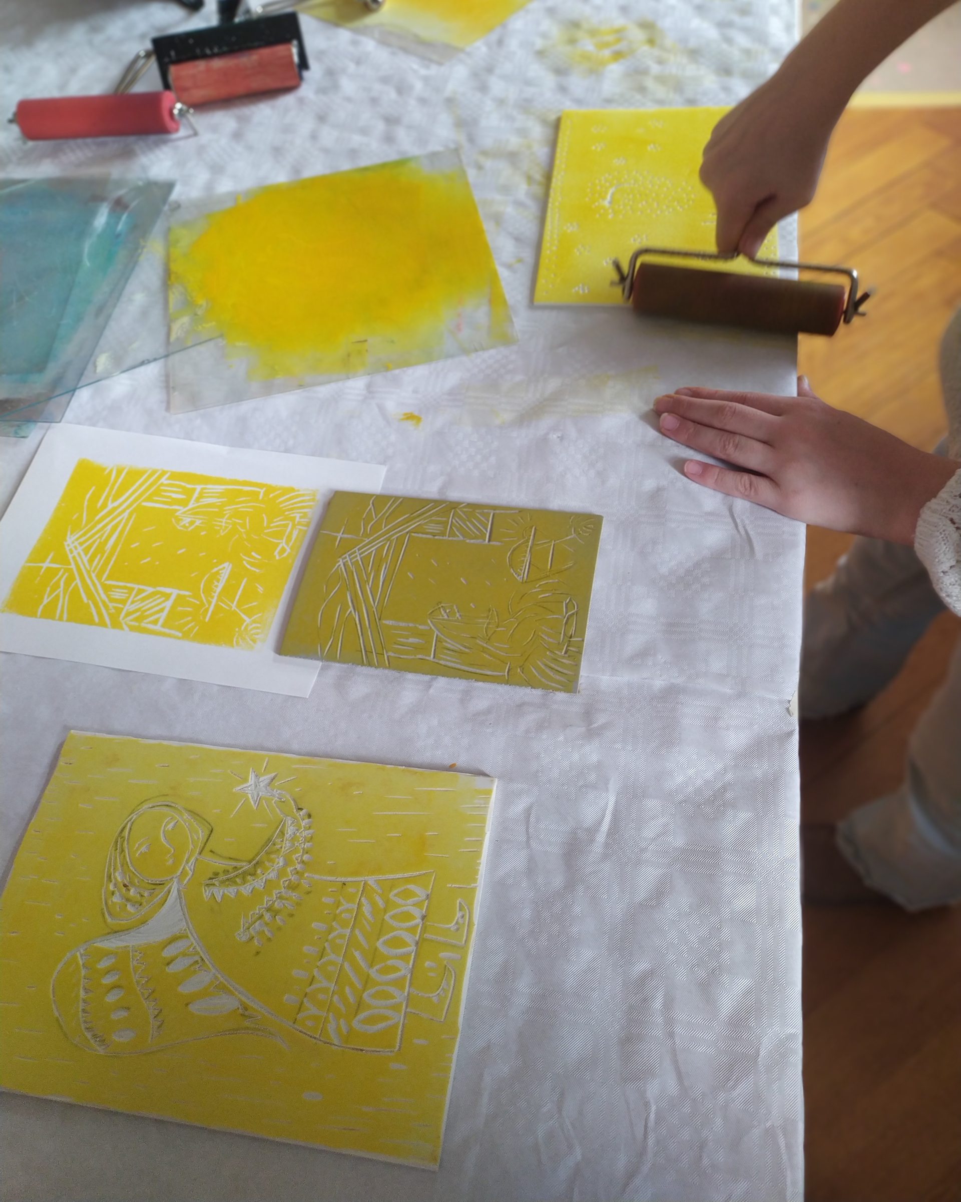 Du wolltest immer schonmal eigene Grafiken drucken? Dann bist du in diesem Kurs genau richtig. Wir lernen verschiedene Drucktechniken und Werkzeuge kennen und gestalten eigene Bilder und Karten.