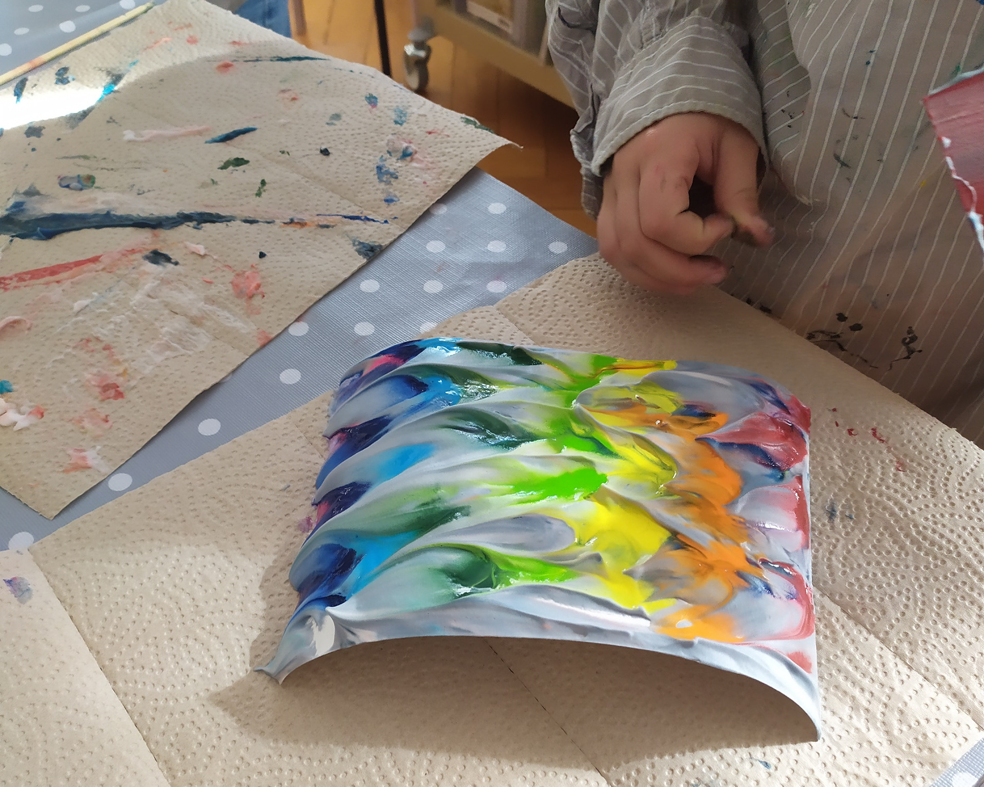 Dazu probieren wir verschiedene Techniken aus: von Drucken über Buchbinden, Papierschöpfen, Zeichnen, Malerei mit Aquarell und Acryl und vieles mehr. Zum Abschluss machen wir eine Ausstellung eurer Kunstwerke für Familie und Freunde.